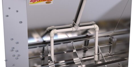 – Tubulação d`água individual entre os lados com bebedouros nipple inox, para umidificar a ração