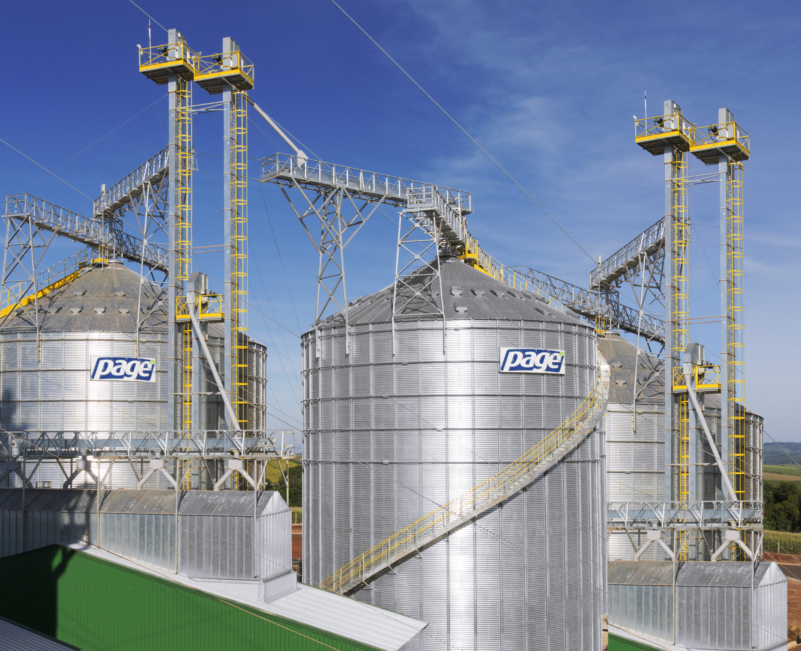 Os elevadores de cereais Pagé são projetados para operar na movimentação vertical de graneis sólidos em regime contínuo. Construídos inteiramente em chapas de aço galvanizado, eles têm capacidade de 5 a 1.500 ton./hora e possuem acionamento por motorredutor.