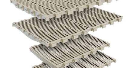 – O piso para leitões em maternidade e creche até 30kg, modelo GSI, apresenta a maior área vazada do mercado, e seu design diferenciado oferece o melhor escoamento dos dejetos e limpeza perfeita sem a necessidade de desmontagem. Tudo isso por conta do design das aletas em perfil triangular (tribar)