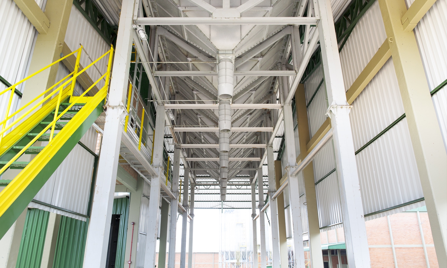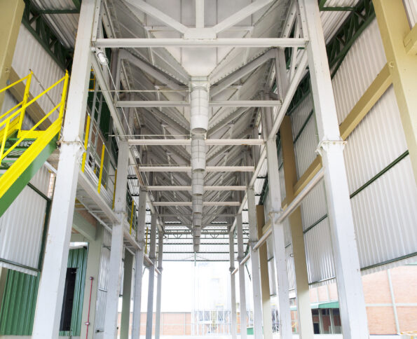 Cada célula possui dois funis de descarga com ângulo de inclinação de 45o com registro manual acionado à distância. Sua estrutura é composta de colunas tubulares quadradas e treliças metálicas fabricadas em aço estrutural.